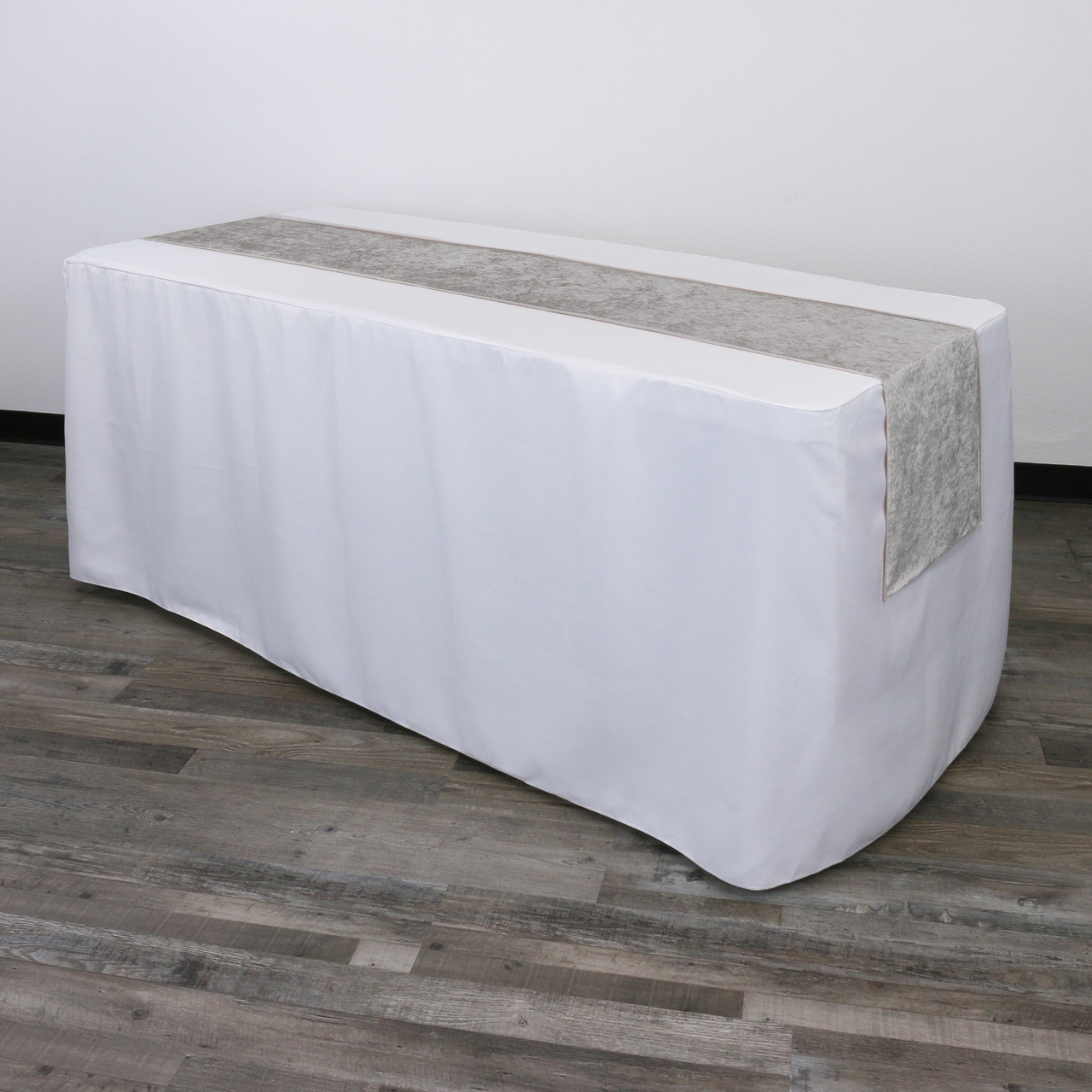 Our 14 x 108 inch velvet table runners in Dark Silver feature serged edges, are stain and wrinkle resistant and can be washed countless times. Perfect for weddings, restaurant dining settings, catering services, and corporate events.