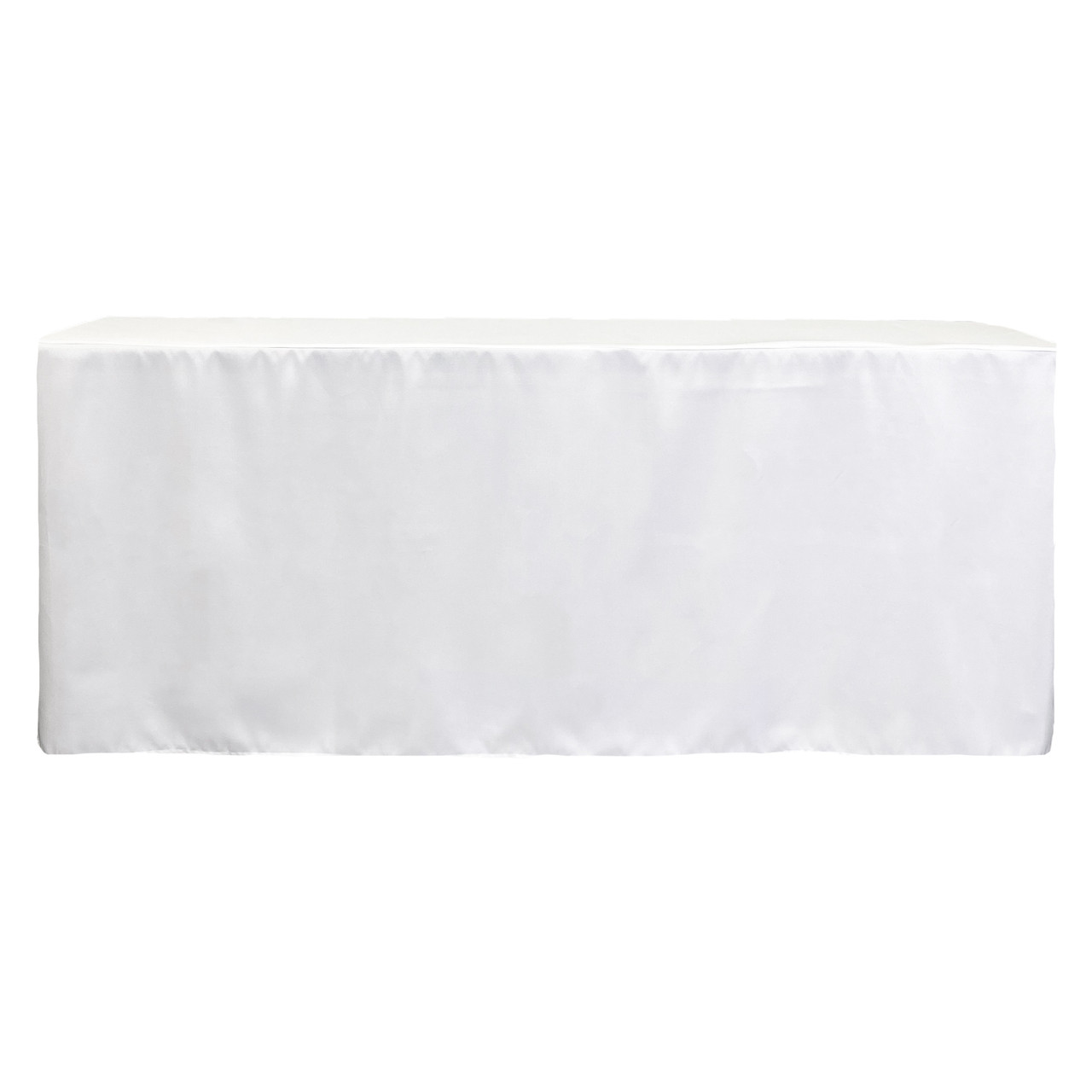 8 ft Fitted Polyester Rectangular Tablecloth Open Back White