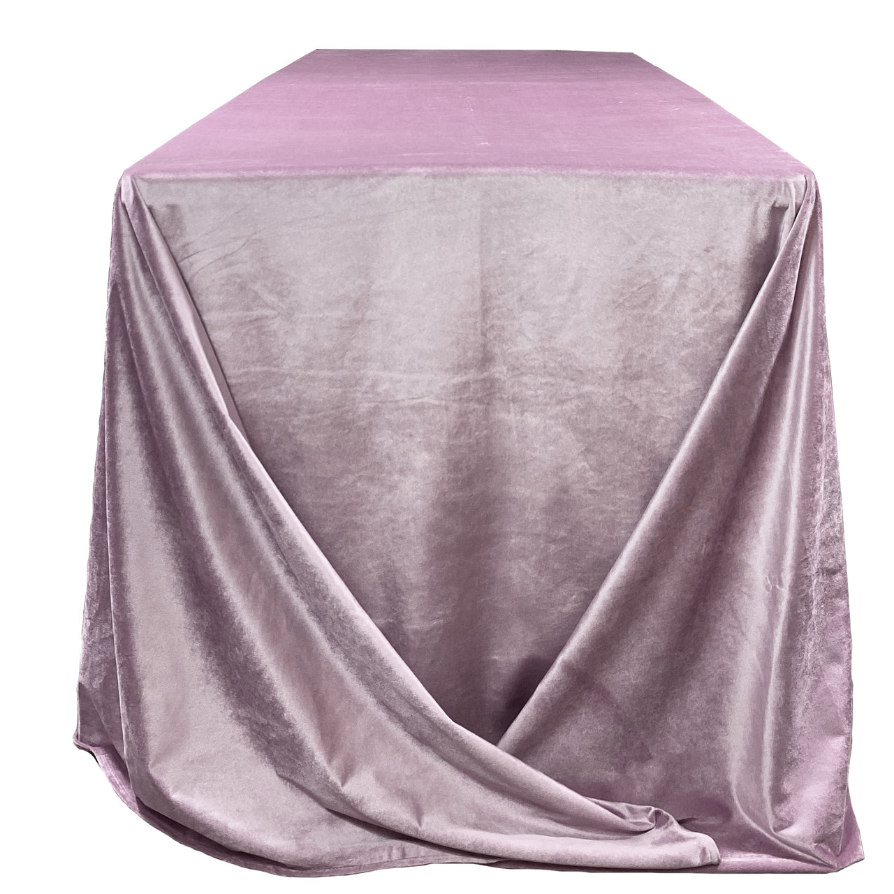 Experience the lap of luxury with the majestic look and feel of our 90 x 156 inch Rectangular Velvet Tablecloths - Dusty Mauve. This premium velvet tablecloth provides the ultimate level of elegance that captures the essence of pure royalty. Crafted from high-quality 275 GSM velvet fabric, our 90 x 156 in. Rectangular Velvet Tablecloths in dusty mauve are designed to provide a floor-length drop on a standard 8 ft. rectangular table with a 30-inch height. Additionally, each tablecloth is seamless and features a hemmed finish setting the standard of sophistication further magnifying your event.
